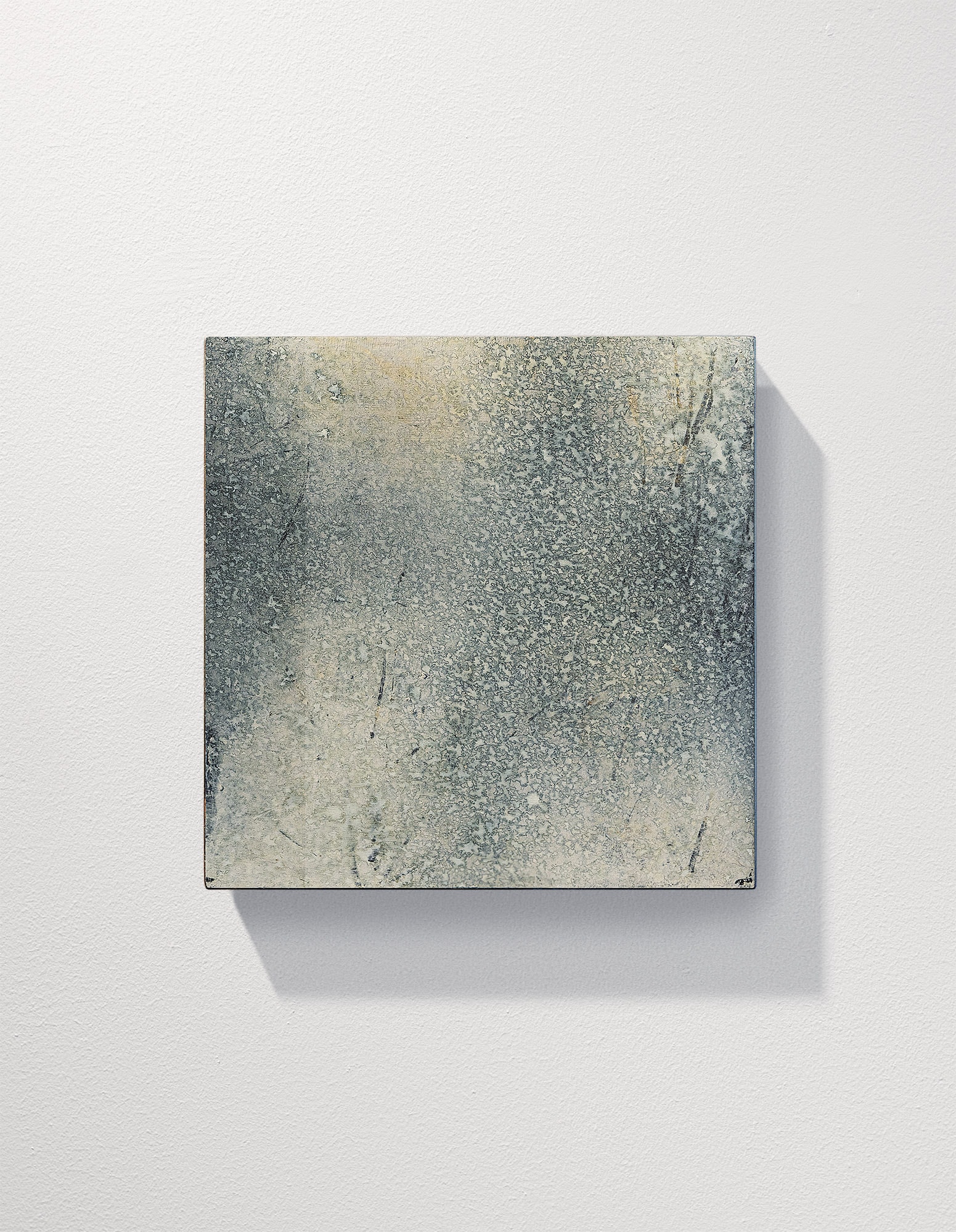 These works are created using mixed media, acrylic and ink on oxidized metal. The frames are handmade and have spacers from the wall to create a more sculptural feel. The iron frame is naturally lead gray and in some cases I polish the front edge which gives a bright shiny surface. The motifs further down with Japanese titles have box frames in iron ie as a box with depth 30 mm. These also have a small distance from the wall.